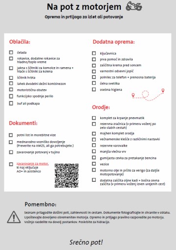 Večna motoristična dilema: Kaj vzeti s sabo na izlet ali motopotovanje, da motor ne bo pretežek? V pomoč vam je lahko seznam opreme in prtljage, ki ga prilagodite dolžini in zahtevnosti poti.